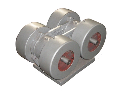 座式激振器它將動(dòng)力源(電動(dòng)機(jī))與振源分開(kāi)后撓性聯(lián)接,具有電機(jī)不參振,改善軸承散熱條件,從而提高整機(jī)使用壽命等特點(diǎn)。維修量小,運(yùn)行可靠,安裝方便,低能耗,因此是各種振動(dòng)機(jī)械產(chǎn)生振動(dòng)(兩軸上偏心塊反向自同步產(chǎn)生近似直線振動(dòng),單軸上偏心塊旋轉(zhuǎn)產(chǎn)生近似圓娠動(dòng))的理想激振器。